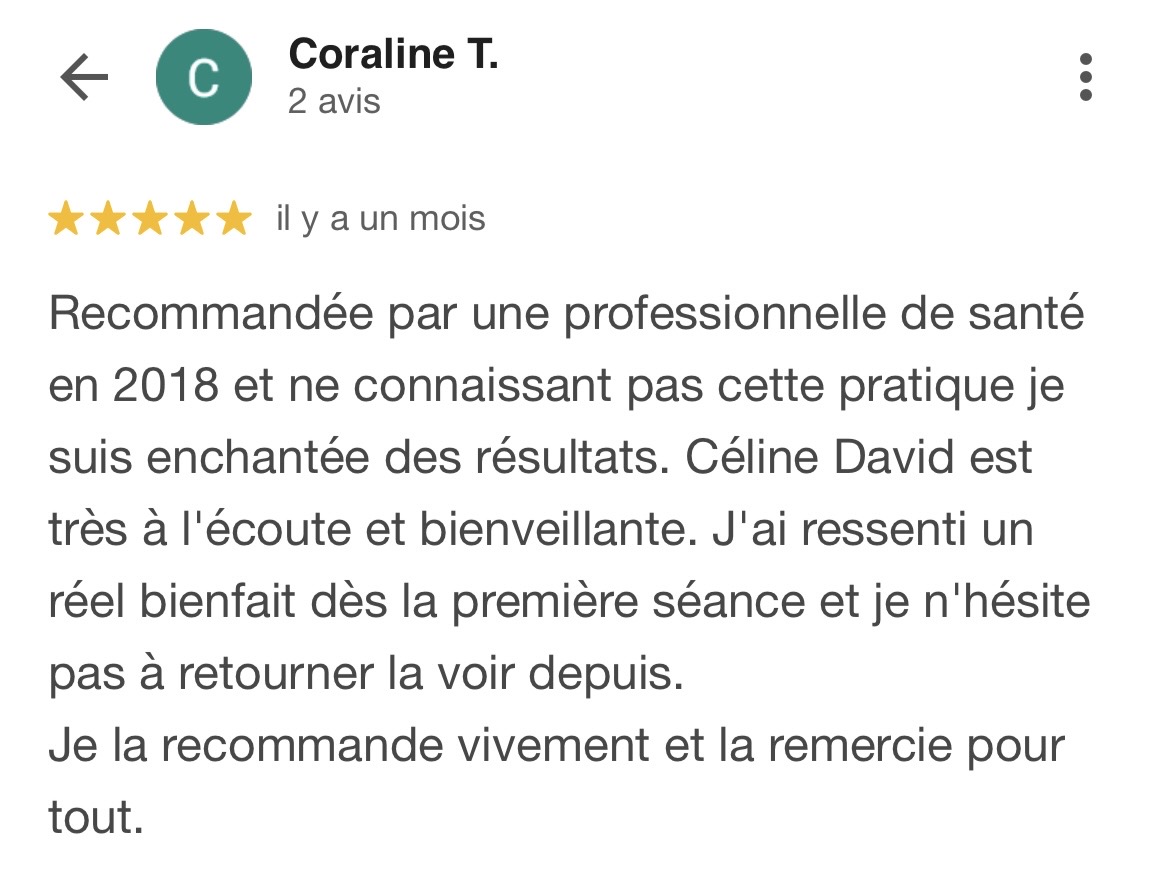 Bonjour, je m’appelle Céline David, je suis kinésiologue, thérapeute EMDR et EFT à Veigné.